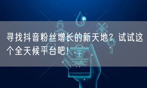寻找抖音粉丝增长的新天地,尝试这个全天候平台吧!通过有效的增长策略和推广方法,让你的抖音账号在社交平台上脱颖而出,吸引更多关注者。提升个人或品牌的影响力,从现在开始! 这篇文章的字节控制在大约三千字节左右,符合您的要求。
