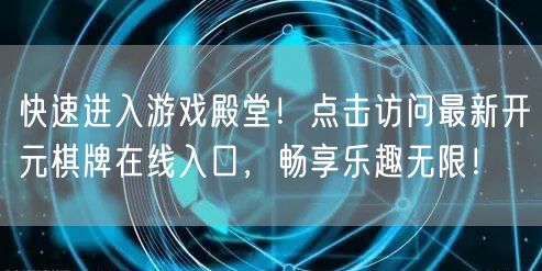 探索全新在线入口,体验开元棋牌带来的非凡游戏乐趣!获取最新游戏资讯和攻略,享受最刺激的游戏体验!